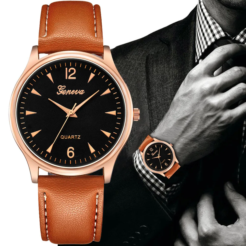 Name: Reloj analógico de cuero sintético para hombre, reloj de pulsera analógico, de cristal cuarzo, con rayo azul, a la moda, 2020