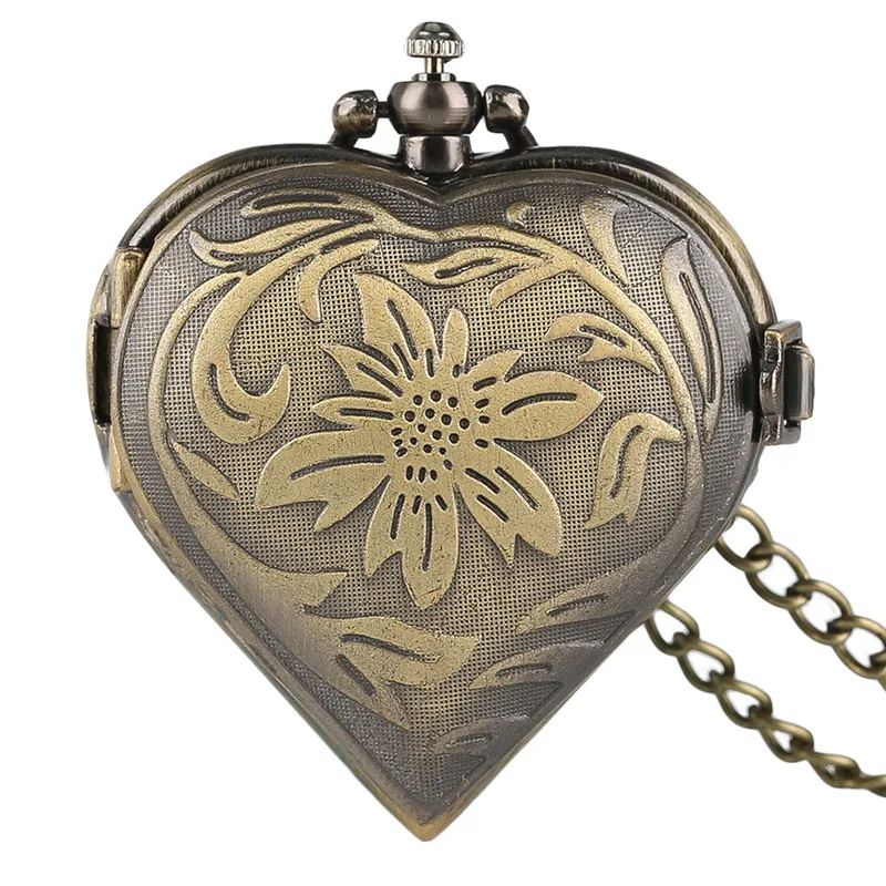 Name: Reloj de bolsillo de cuarzo con forma de corazón para mujer, esfera de cristal, Retro, de bronce, regalo femenino con cadena de collar, 2020